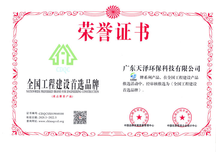 Honor 天澤污水處理工程公司資質(zhì)